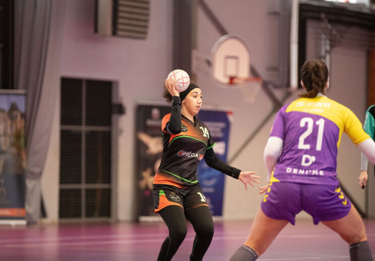La 0-6 marnaise est de plus en plus compacte autour de ses postes 3 pour annihiler les un-contre-uns de Mélina, mais libère de l’espace pour Emma qui hérite d’une balle de but (3-4). Epern’Ay fait le forcing sur sa base avant (pivot et ailière gauche) et prend les commandes du match pour la première fois de la partie à la 8ème minute (5-4).