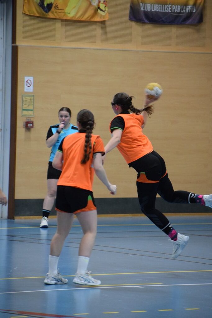 Le jeu bognysien offensif qui penchait fortement à gauche, se déplace désormais à droite et au poste de pivot : Emilie C., par deux fois, s’arrache pour s’extirper de la défense adverse et scorer. Puis Marie donne du rythme à droite et équilibre la pression offensive des félines.